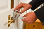 The EasyLock is a simple but incredibly strong temporary door lock. The lock-core is manufactured from chromium plated steel encased in ABS plastic. The latch plate is manufactured from high strength Stainless Steel as is the sliding mechanism ensuring that the lock will never fail under attack. Incredibly simple to install, only seconds to activate, the Easy Lock will prevent anyone, even with a key, from opening the door. This means that if you are staying away from home in a hotel, rental home or apartment, student dormitory or even if you need extra security on your own home on a door that may not have it’s own lock the Easy Lock will hold the door secure. Additionally the EasyLock has a unique feature which means that if someone knocks on the door and you are not sure who they are you can easily open the door sufficiently to identify them or receive a note or identification. The EasyLock is one of the most secure methods of temporarily securing a door. It is lightweight, lighter than an Iphone. It is strong, steel based. It is incredibly simple to utilise.